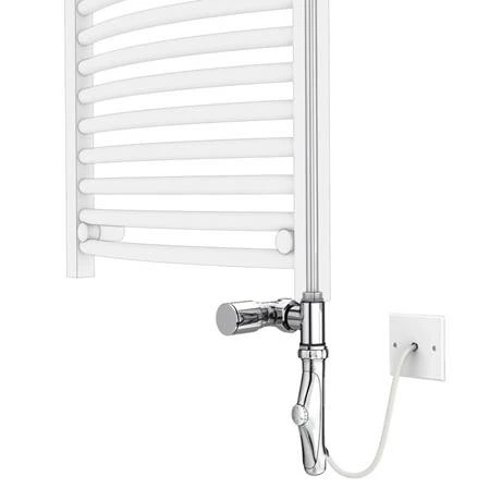 - Fits any 1/2″ BSP wet system towel warmer to give heating on demand when the central heating system is off.