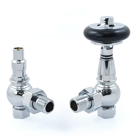 The Amberley range of radiator valves feature black rings to show the temperature setting, a real wooden handle in a black finish, and a distinctive unique chimney design lockshield. These thermostatic radiator valves (TRV) are the perfect match for users with traditional radiators, such as cast iron or column radiators.