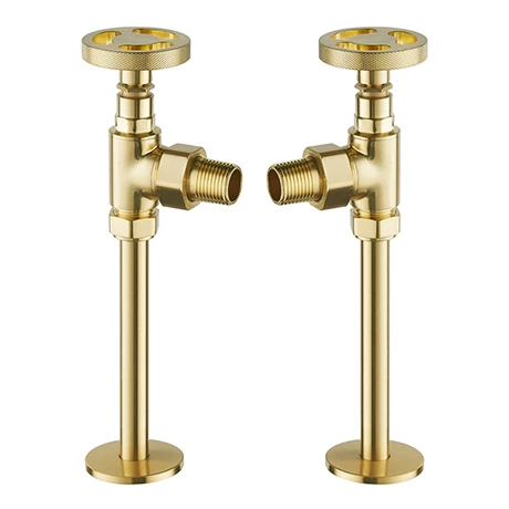 These angled industrial-style round radiator valves are manually controlled, allowing you to find the perfect temperature. Valves feature a stripped-down aesthetic with round knurled textured tap heads, perfect for creating an eye catching industrial look in your bathroom. Manufactured to the highest standards, featuring solid brass fixtures with hardwearing brushed brass plating. With this high quality engineering and construction, they are sure to stand the test of time – both physically and aesthetically.