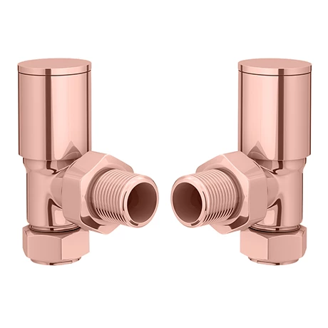 These stylish modern radiator valves are designed and manufactured from quality rose gold plated brass. Valves are angled and come as a pair.
