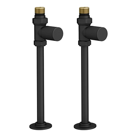 These modern Arezzo manual radiator valves are designed and manufactured from quality brass with a matt black finish. Valves are straight and come as a pair. Supplied with a matching pair of stylish 180mm high matt black pipes with concealing plates, designed to give your radiator pipework a clean uniformed look.