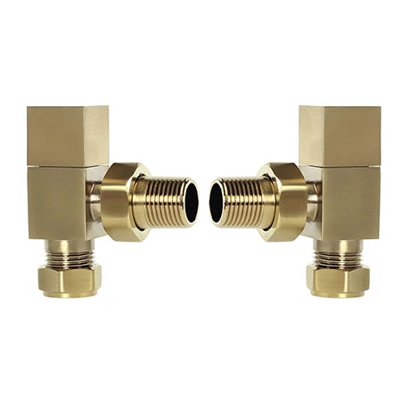 These modern square Arezzo manual radiator valves are designed and manufactured from quality brass with a stunning brushed brass finish. Valves are angled and come as a pair.