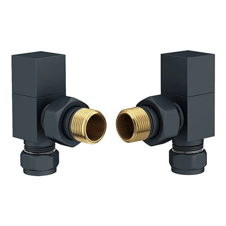These Square Anthracite Angled Radiator Valves make a striking impression to complement contemporary interiors. Manufactured in solid brass for durability and finished with an on trend anthracite grey powder coating, this pair of valves will suit style conscious homeowners looking for a chic aesthetic in every detail of a room. The practical angled valves mean you can hide any unsightly pipework beneath the surface of the wall for a clutter free look that will enhance the feeling of space in your home.