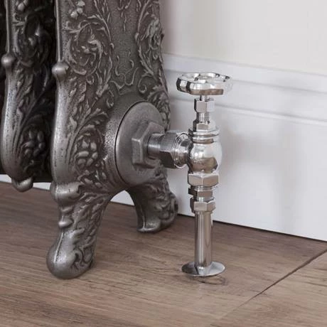 The Chatsworth angled radiator valves are a set of period style valves to compliment our range of traditional radiators. Manufactured from high quality materials, the valves feature a decorative head and come in a stunning chrome finish.