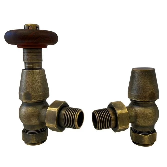 The Chatsworth traditional styled angled thermostatic radiator valve, features a stylish wood effect wheel head and a stunning rustic brass finish. Beautifully engineered to integrate into any period bathroom. Thermostatic valves allow you to alter the temperature of your room easily by pre-selecting your desired temperature and letting the radiator automatically achieve the correct heat output.