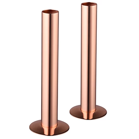 A pair of 130mm high polished copper sleeving kits, disguise unsightly plumbing with a carefully designed pipe sleeve and floor plate.