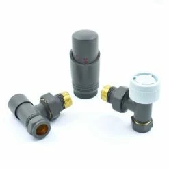 The Delta Angled Thermostatic Radiator Valves in Gunboat Grey match the most contemporary of designer radiators. Thermostatic radiator valves make it possible to control the temperature in your room quickly and easily. Simply set the temperature that you desire and radiator will automatically reach the required heat output, keeping your home at a comfortable and constant temperature.