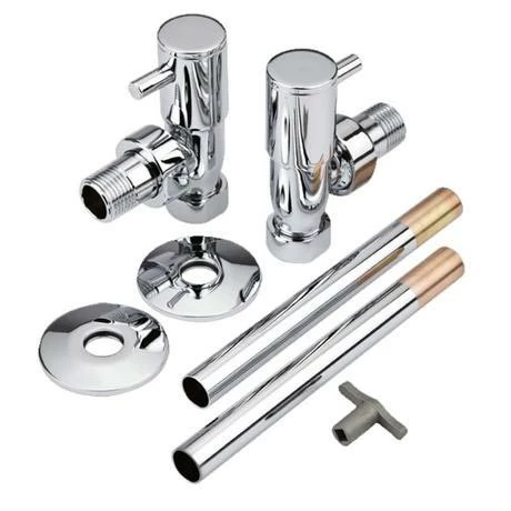 Matching Hudson Reed minimalist chrome angled radiator valves complement our range of heated towel rails. Beautifully engineered to integrate into any modern or minimalist bathroom.