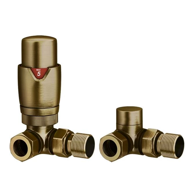 The contemporary Monza Corner Thermostatic Radiator Valves in a quality Antique Brass finish. Thermostatic radiator valves make it possible to control the temperature in your room quickly and easily. Simply set the temperature that you desire and the radiator will automatically reach the required heat output, keeping your home at a comfortable and constant temperature.