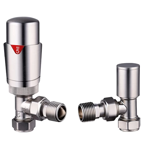 Matching angled brushed nickel effect thermostatic radiator valves complement our range of towel rails and radiators. Beautifully engineered to integrate into any modern or minimalist bathroom. A thermostatic radiator valve allows you to control the heat output of an individual radiator or heated towel rail.