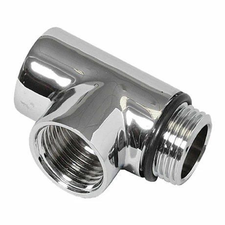A T-piece fitting designed for use in conjunction with a heating element and radiator valves. Manufactured to a high quality using the finest materials and beautifully finished in a polished chrome effect. Suitable for use with duel fuel compatible radiators.