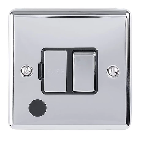 The Revive Switched Fused Spur with Flex Outlet features rounded edges for a contemporary look. Made from high quality materials, this accessory is styled in a modern design and has a Polished chrome finish . Fused spurs are commonly used as an alternative to a conventional socket, for the installation of powerful electrical appliances that can be installed without a plug, such as electric towel rails.