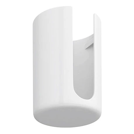 A white finished plastic cover cap for towel rail heating elements (rear exiting cable). The ideal solution for covering the exterior of heating elements.
