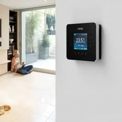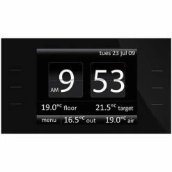 The clear, easy to use colour touchscreen displays energy consumption usage at the touch of a button and its Proportional Adaptive Function makes sure the floor heater is activated only when required and that the room never overheats. It is available in a wide range colour finishes, meaning you can find the perfect thermostat for your home’s style.